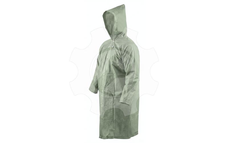 Je vyrobena z voděodolného materiálu EVA, který spolehlivě chrání před deštěm a vlhkostí, přičemž zůstává dostatečně lehký a poddajný pro pohodlné nošení. Volný střih s kapucí umožňuje snadné obléknutí přes běžné oblečení a poskytuje dostatek prostoru pro pohyb.