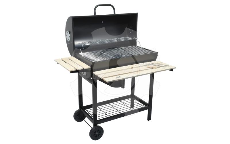 Velký zahradní gril na dřevěné uhlí s rozměrnou grilovací plochou a celou řadou odkládacích prostor.