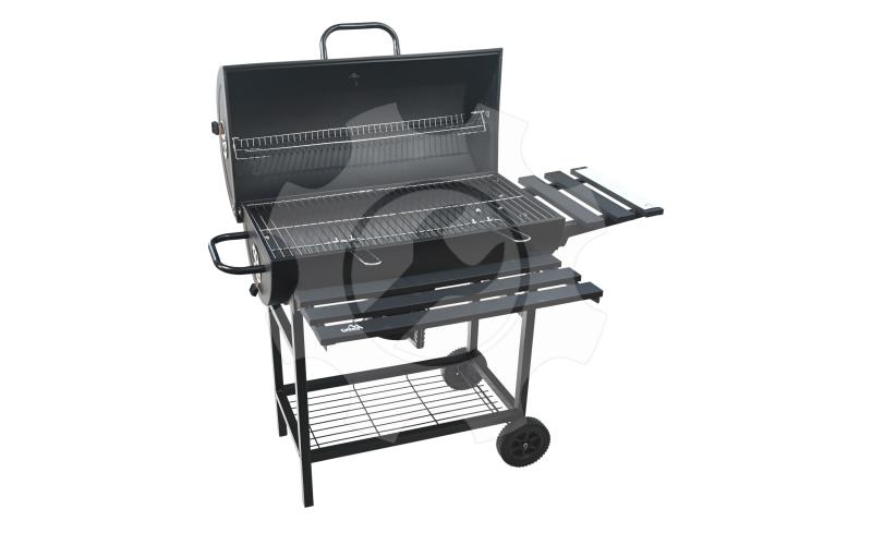 Vyklápěcí víko grilu z nerezové oceli je opatřené teploměrem a odkládací mřížkou pro udržování teploty již hotových pokrmů. Samotný grilovací prostor je opatřen chromovanou grilovací mřížkou s rozměry 70 x 35 cm. Víko je na bocích doplněno regulací proudění vzduchu. Ve spodní části je navíc umístěn vyjímatelný popelník, který umožňuje snadné vysypání popela.
