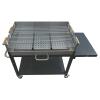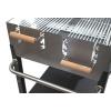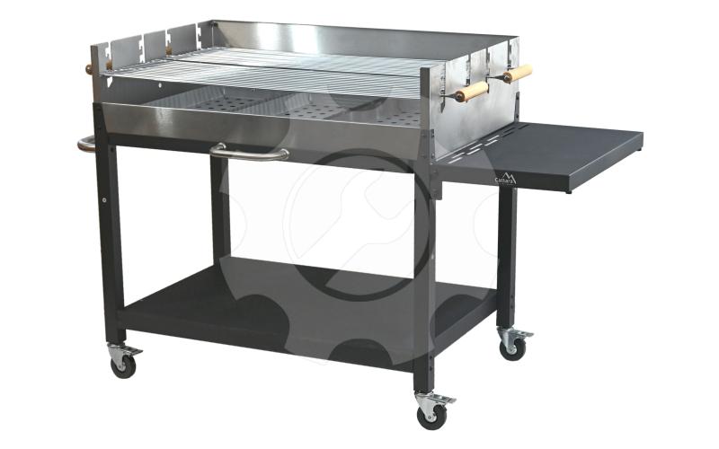 Grilovací plocha o velikosti 95 x 60 cm je vybavena dvěma nerezovými rošty, které lze pomocí bočních rukojetí nastavit do tří výškových úrovní (80 až 87 cm) podle potřeby. Snadný přístup ke třem samostatným nádobám na uhlí, po vyjmutí roštů, usnadňuje regulaci teploty a doplňování paliva.