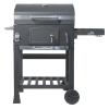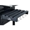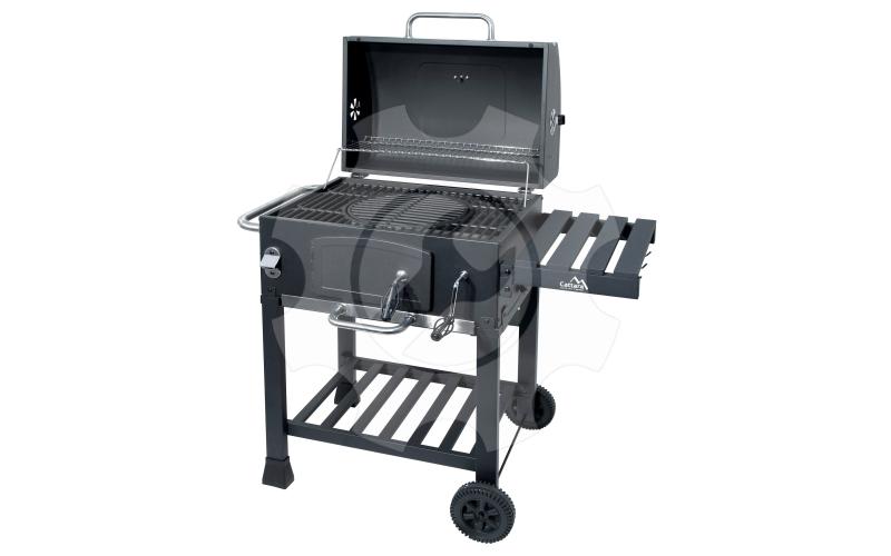 Konstrukce z oceli je opatřena hrubou černou barvou. Madla a ovládací kovové prvky, mají dostatečné rozměry pro pohodlný úchop a zajišťují precizní ovládání. Oboustranná regulace ventilace perfektně lícuje s konstrukcí. Další předností je rošt na uhlí s nastavitelnou výškou 9-21 cm od grilovacího prostoru, pomocí kličky na přední straně. Dvířka na čelní straně grilu usnadňují doplňování uhlí.