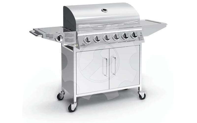Plynový zahradní gril se systémem Flame Tamer. Hlavní grilovací prostor je osazen 6x hořáky se samostatnou regulací a piezo zapalováním. Díky možnosti vypnout prostřední hořáky je gril vhodný jak pro přímé, tak pro nepřímé grilování a je vybaven odkládacím roštem pro udržování teplot již hotových pokrmů.