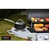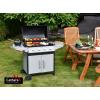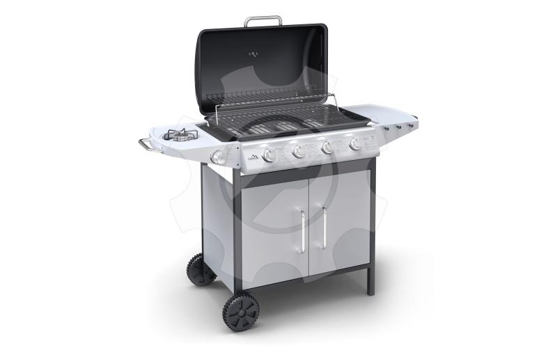 Plynový zahradní gril se systémem Flame Tamer. Hlavní grilovací prostor je osazen 4x hořákem se samostatnou regulací a piezo zapalováním a je vybaven roštem pro udržení teplých pokrmů. Díky možnosti vypnout prostřední hořáky je gril vhodný jak pro přímé, tak pro nepřímé grilování.