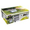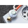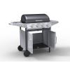 Gril je pojízdný (2 kolečka), je vybaven sklopným víkem s teploměrem a odkládacími poličkami s háky na příslušenství. Dále je vybaven přídavným bočním vařičem se samostatnou regulací a piezo zapalováním. Ve střední části je uzavíratelná skříňka s dvířky. Součástí je i spojovací hadice k plynové lahvi a redukční ventil. Díky sklopné boční poličce se gril snadno skladuje.