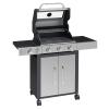Plynový zahradní gril se systémem Flame Tamer - nevyžaduje lávové kameny. Trojitý hlavní a jeden boční nerezový hořák s piezo zapalováním a plynulou regulací.