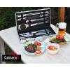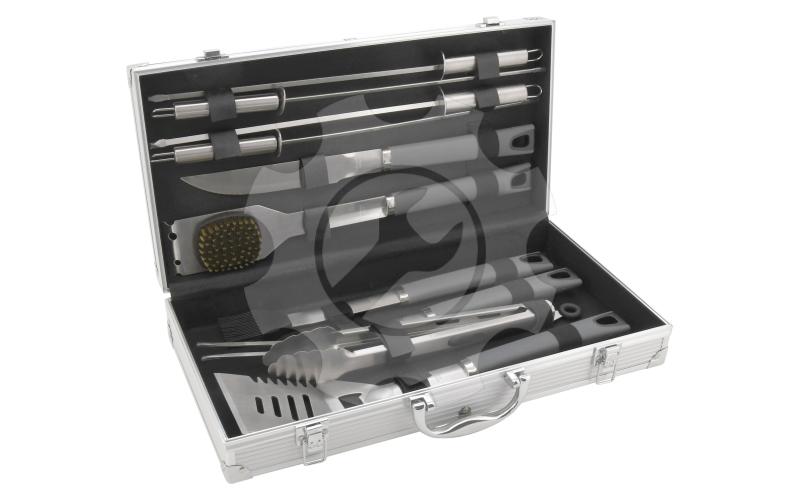 V sadě se nachází obracečka s precizně zabroušenou hranou vybavená zoubkovaným ostřím, otvírákem zátek a otvory pro odtok. Kleště, speciálně tvarované pro jistý úchop nejrůznějších pokrmů, kartáč pro údržbu grilu, kdy samotná kartáčová část je z mosazi. Nepostradatelnou částí grilovcího nářadí je i dvouzubá vidlička, štětec se štětinami z nylonu, pro potírání, či mašlování pokrmů, porcovací nůž a 4x grilovací jehlice s hroty broušenými do špičky.