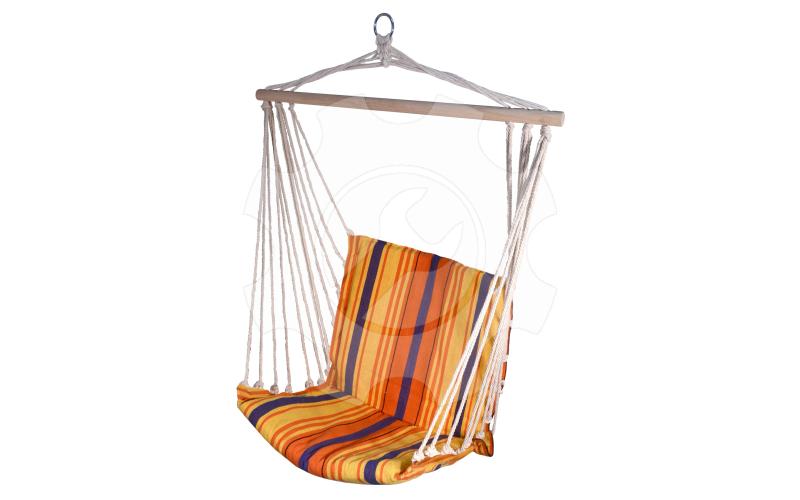 Síť je tvořena měkkým polstrovaným sedákem o rozměrech 50 x 45 cm a opěrkou s výškou 50 cm. Vysokou míru komfortu zajišťuje právě polstrování o tloušťce 3 cm, doplněné hustě tkaným, měkkým a pružným vláknem jednotlivých provazů.