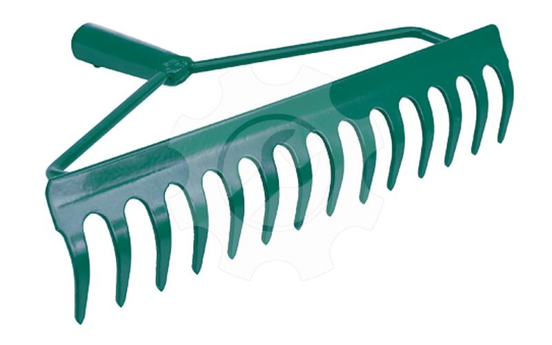 Kvalitně vyrobené kovové hrábě (bez násady). Univerzální hrábě se šířkou záběru 360 mm.