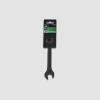 Oboustranný maticový klíč s černěným povrchem. Profilované tělo, otevřené ploché čelisti.