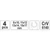 Sada prstencových polootevřených klíčů Yato, vyrobeno z kvalitní chromvanadiové slitiny oceli (CrV 6140).