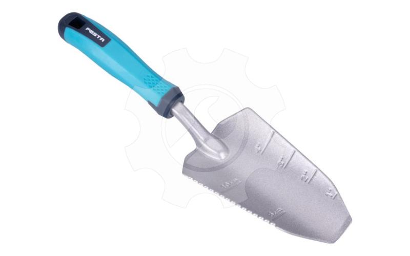 - zahradní lopatka z odolné a lehké slitiny hliníku s ergonomickou pogumovanou rukojetí