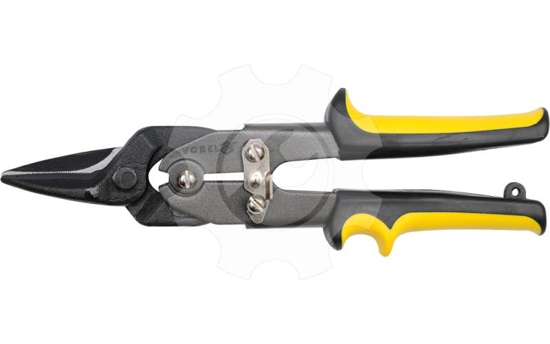 Kvalitní vystřihovací nůžky na plech s čelistmi z chrom niklové slitiny oceli. Tyto vystřihovací nůžky mají břity přizpůsobeny pro přímý střih. Břity mají tzv. mikro ozubení, které zamezuje sesmeknutí plechu mimo osu střihu.