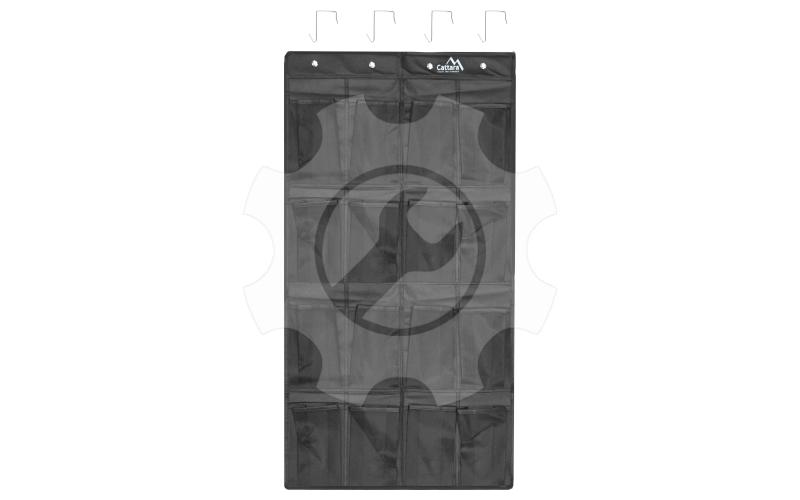 Organizér s rozměry 55 x 103 cm je opatřen 16 sítěnými kapsami o rozměrech 12 x 20 cm, do kterých je možné umístit nejrůznější předměty od flašek s pitím až po čelovky, peněženky, náhradní ponožky a jakékoliv další předměty.
