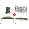 Důmyslná konstrukce stanu z oceli zajistí rychlé sestavení i složení. Nohy konstrukce jsou opatřeny pružnými pojistkami, které zajistí bezpečný a rychlý způsob nastavení vhodné výšky stanu (nastavení výšky 2,5 / 2,4 / 2,3 m). Nohy jsou ve spodní části opatřeny patkou, se dvěma 7 mm otvory pro případné ukotvení (kolíky pro ukotvení nejsou součástí balení).