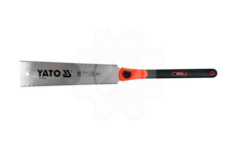 Japonská oboustranná ruční pila (tzv. ryoba). Kalené zuby na obou hranách čepele. Rozteč 7 tpi na jedné straně a 12 tpi na druhé straně výrazně zvyšuje využitelnost pily.