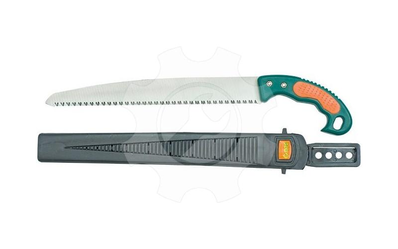 Ruční pila na větve o délce ostří 300 mm,trojbroušené zuby, určena k pohoplnému prořezu větví s ergonomickou rukojetí a plastovým pouzdrem pro zakrytí čepele.