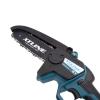 Mini řetězová pila slouží k prořezávání větví, keřů, nebo menších stromů s maximálním prořezem 150 mm. Velkou výhodou je ovládání pouze jednou rukou a bezpečnou práci zajišťují ergonomicky pogumovaná rukojeť a kryt řetězu.