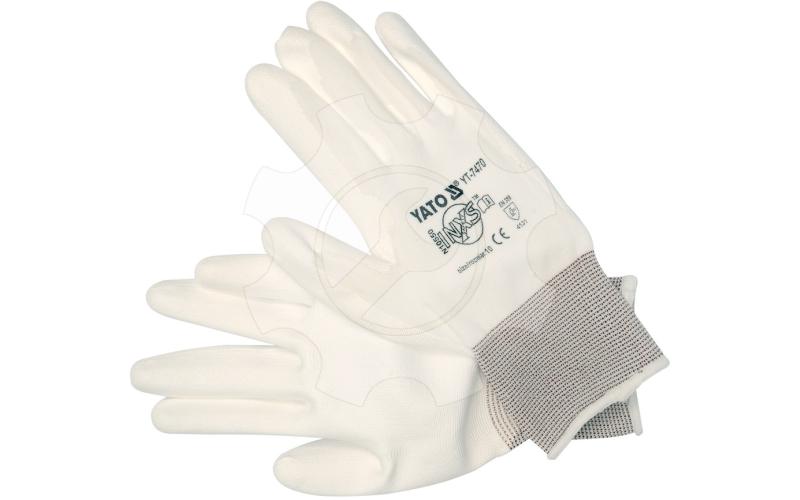 Rukavice jsou zhotoveny z nylonové tkaniny, která je na spodní straně a na čelní straně prstů potažena polyuretanem. Zakončení rukavic lemováním.