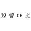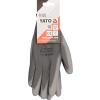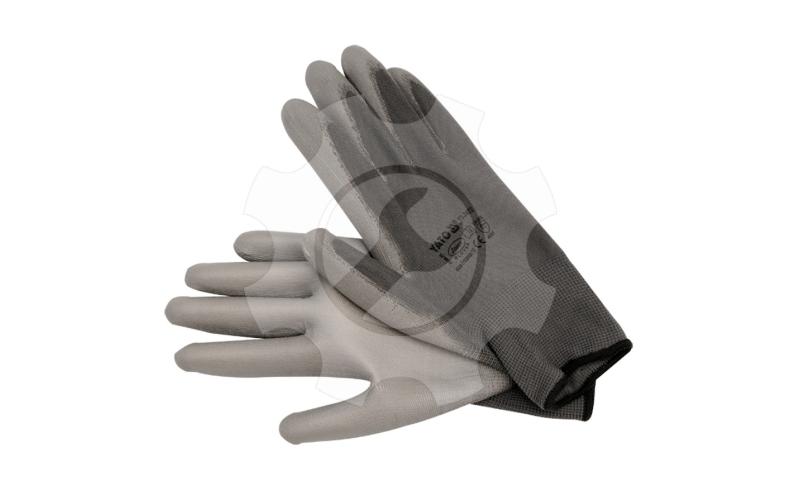 Rukavice jsou zhotoveny z nylonu, který je na spodní straně a na čelní straně prstů potažen polyurethanem. Zakončení rukavic lemováním.