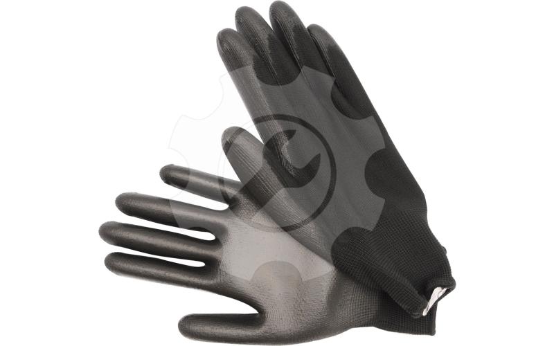 Rukavice jsou zhotoveny z polyesteru (steh 13) potaženého polyuretanem a zakončené odolným lemem.