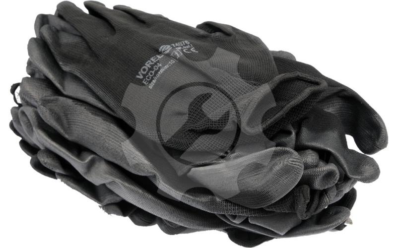 Rukavice jsou zhotoveny z polyesteru (steh 13) potaženého polyuretanem a zakončené odolným lemem.