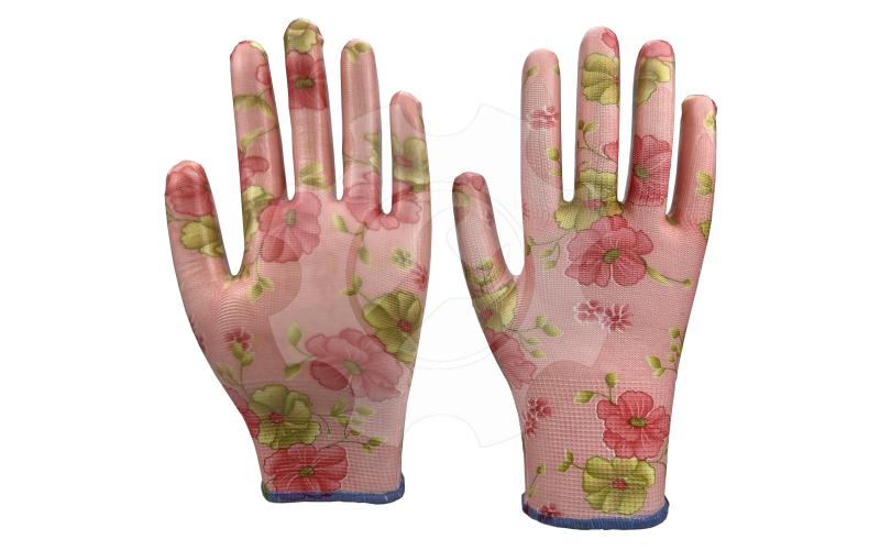 Zahradní rukavice NITRILE FLOWERS poskytují spolehlivou ochranu rukou při zahradních pracích, jako je výsadba, pletí nebo manipulace s nářadím.