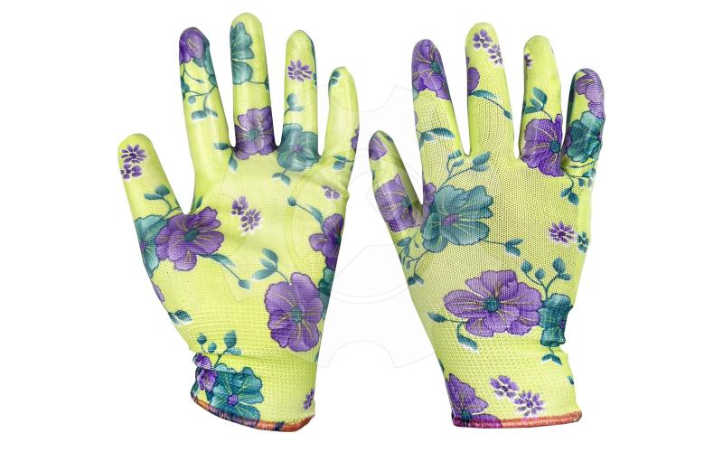 Zahradní rukavice NITRILE FLOWERS poskytují spolehlivou ochranu rukou při zahradních pracích, jako je výsadba, pletí nebo manipulace s nářadím.