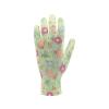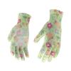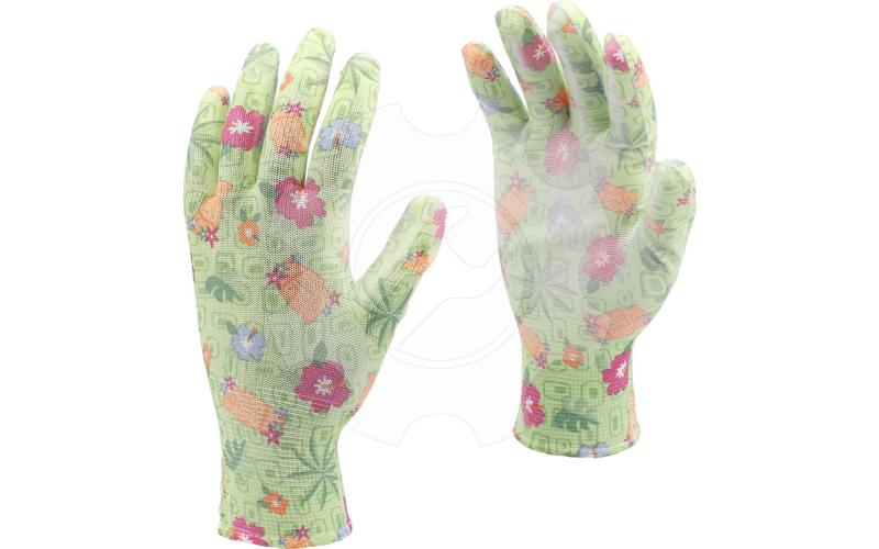 Lehké zahradní rukavice z barevného polyesteru, potažené bílým polyuretanem v oblasti úchopu.