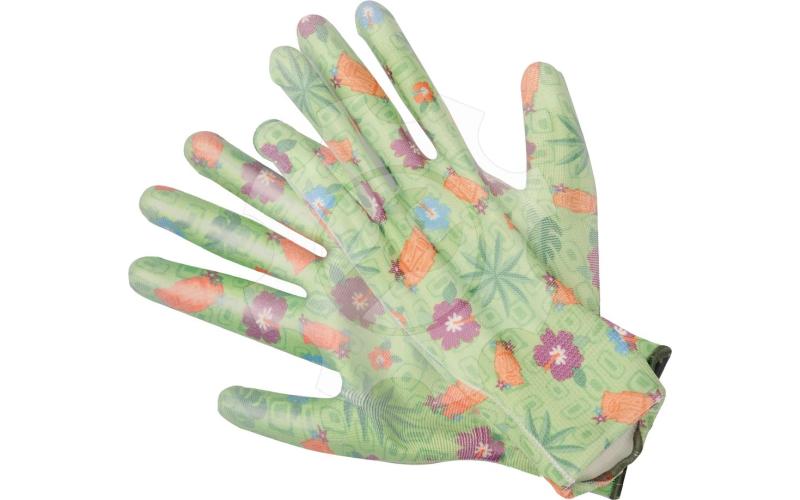 Rukavice jsou zhotoveny z polyesteru potaženého polyuretanem, vynikají pohodlností a citem při manipulaci se zahradními materiály.