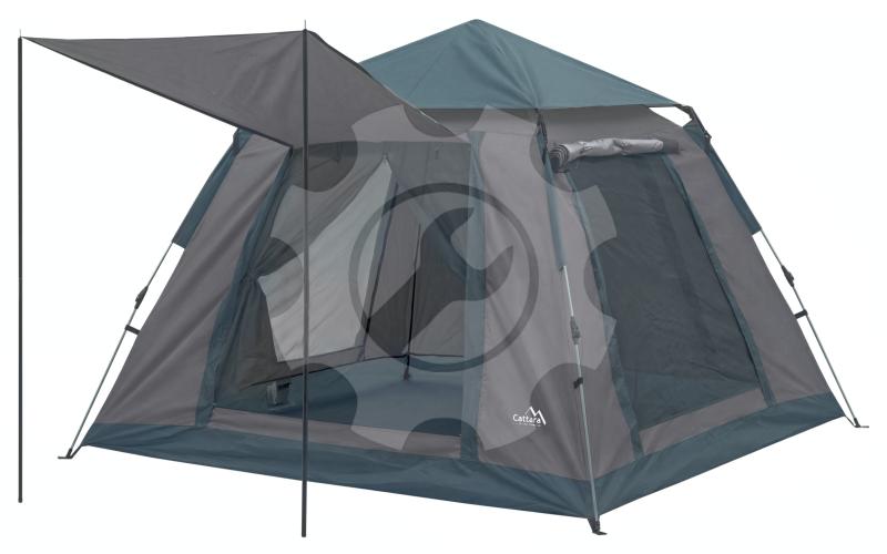 Kempingový stan s rychlorozkládací konstrukcí vhodný pro 3-4 osoby. Rozměry 200 x 200 x 140 cm.