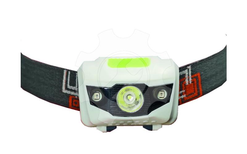 Kompaktní a lehká čelová svítilna. Nastavitelný popruh. Vyrobeno z odolného ABS plastu. Dvojí intenzita hlavního bílého LED světla. Svítivost 120 lm! Nastavitelné polohy sklonu. Přídavné samostatně svítící nebo blikající červené LED diody. Voděodolné provedení. Napájení 3x baterie AAA. Vhodné pro práci, sport i kempování.