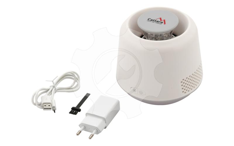 Lampička s elektronickým lapačem hmyzu, který využívá světlo s ultra fialovými paprsky jež efektivně lákají létavý hmyz (např. mouchy, můry, moly, komáry a další). Přilákaný hmyz je nasátý do tichého ventilátoru zařízení a zůstane uvězněn ve vyjímatelném zásobníku. Přístroj k hubení nevyužívá žádných chemických látek, pracuje bez zápachu a bez znečištění.