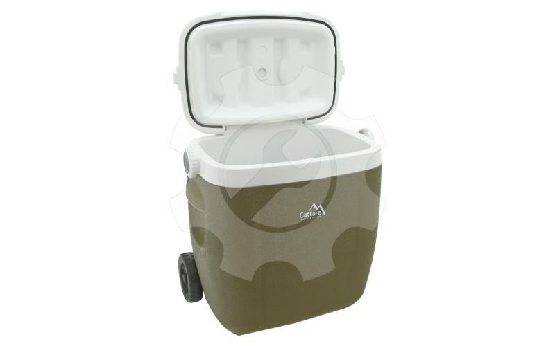Konstrukce je vyrobena z odolného plastu se snadno omyvatelným povrchem, který zajišťuje dlouhou životnost a jednoduchou údržbu. Termobox je navíc vybaven teleskopickou rukojetí a kolečky pro pohodlnou manipulaci i při plném zatížení.