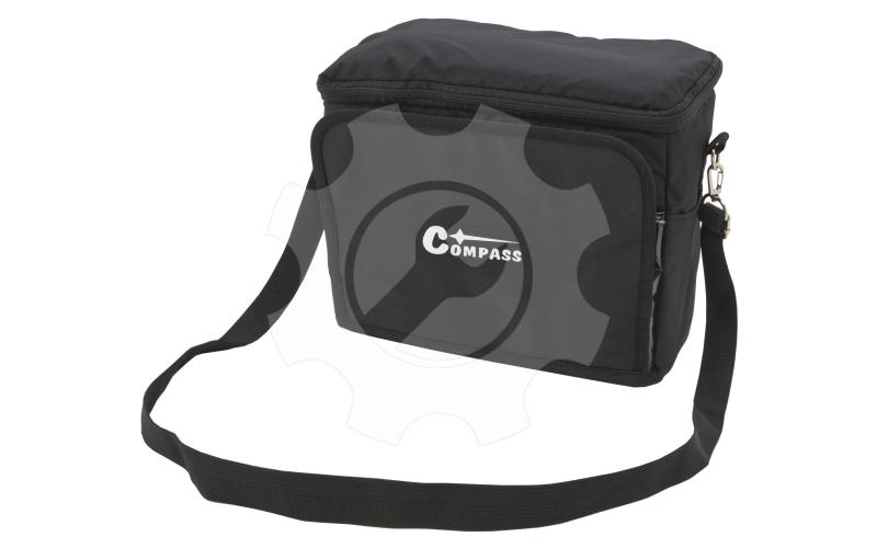 Termotaška k zavěšení na opěrku hlavy u přední sedačky automobilu, vhodná i k přenášení pomocí ramenního popruhu.