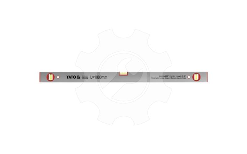 Vodováha se třemi libelami, celková délka 1000 mm, robustní profil, plastové koncovky, odolnost proti nárazu.